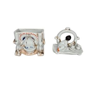 1900 German Fairing Box, Child On FireplaceMantle, Porcelain Dresser Box