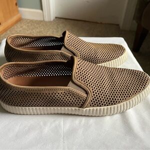 Frye Camille Perforated Slip On Sneaker Carmel Brown Tan Womens Sz 9.5 M EUC