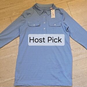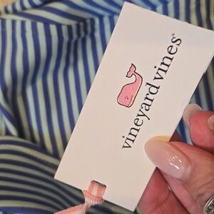 New Vineyard Vines UPF Striped Crystal Blue Margo Shirt Dress