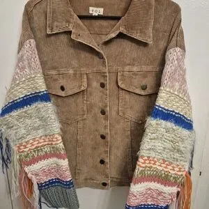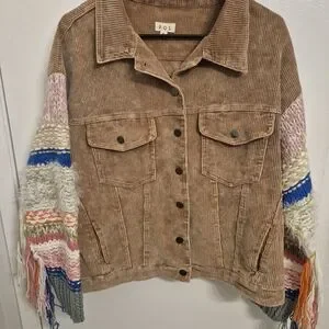 Stay stylish with the POL Women's Corduroy Jacket featuring a unique multicolor design. Perfect for adding a pop of color to your wardrobe. Heavy. Can fit small to large.
