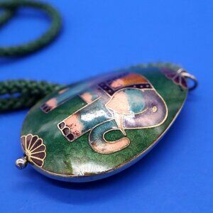 Set of 2 Cloisonne' Necklaces Elephant & Floral Pendant on Cord Vtg Estate Find
