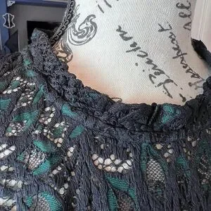 WHBM Black Green High Neck lace shell blouse NWT romantic gothic dark academia