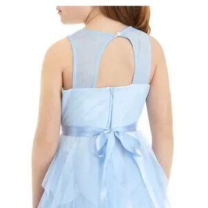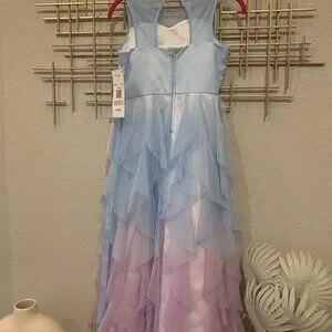 Beautiful ombre girls size 12 dress with keyhole illusion back, jeweled belt and ruffle cascade skirt.