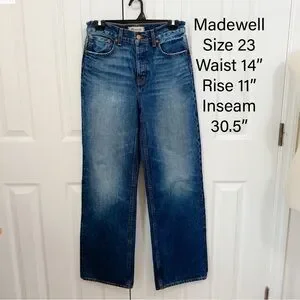 Never worn or washed but tags removed. These are size 23 but run bigger. They are 100 cotton so no stretch. These are button fly and wide leg full length. See last pic for measurements.