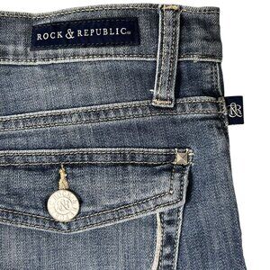 Rock & Republic Kendall Mid-Rise Jeans 10 Straight Leg Denim Button Flap Pockets