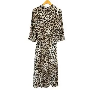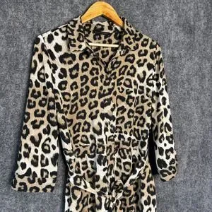 Banana Republic Dress Leopard Print Maxi Shirt Women 14 Classic Elegant Mobwife