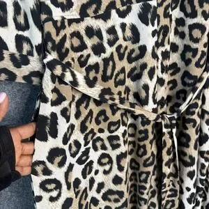 Unleash your inner wildcat with this stunning Banana Republic maxi shirt dress! The captivating leopard print cascades down a flattering silhouette, creating a statement piece that's both bold and refined. The classic shirt dress design, complete with a button-down front and a chic collar, is elevated by the playful animal print. A self-tie belt cinches at the waist, accentuating your figure and adding a touch of definition. Side pockets offer everyday convenience and a relaxed feel. Imagine turning heads at a weekend brunch or exuding confidence at a stylish cocktail party in this versatile and effortlessly chic dress.