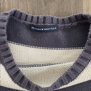Brandy Melville Navy and Cream Striped Crewneck Sweater