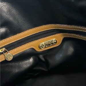 Condition: Some rubbing on exterior and corners (see photos). Handles rolled tight. Interior and bottom are excellent. Crossbody strap in good condition.
