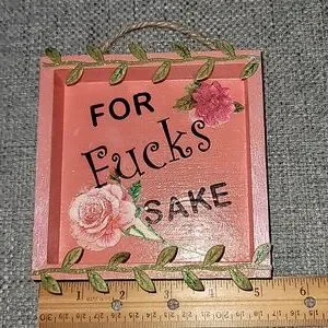Sarcastic Snarky Home Decor. 'For Fucks Sake'. Wall decor or place on a shelf.