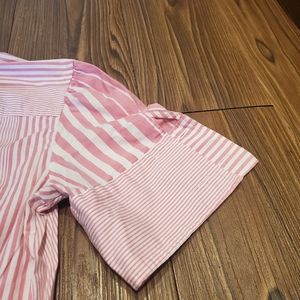 Express Striped Top Pink White Blouse Button Down Shirt Cotton Preppy Casual 4