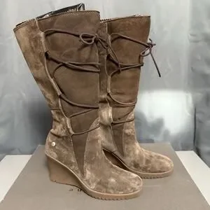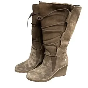 UGG Australia Elsey 5596 Brown Suede Shearling Wedge Boots Women's 7 M Fur Lined