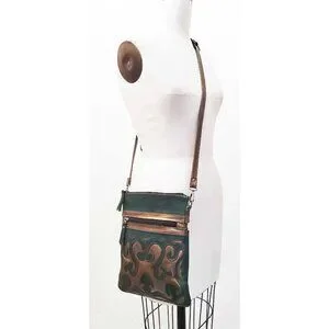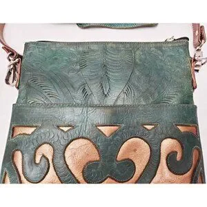 Leaders in Leather Skinny Crossbody Shoulder Bag Tote Cutout Tooled Leather
