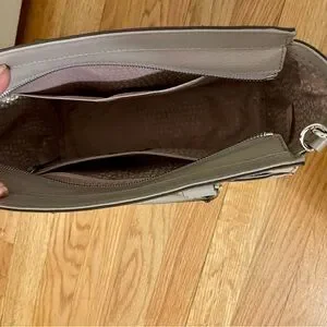 Chic light gray satchel by Kate Spade. Sleek design with dual handles and adjustable strap. Ideal for versatile styling. Removable shoulder strap. New without tags.
