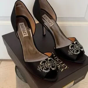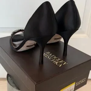 Badgley Mischka Black Peep-Toe Heels with Silver Accents
