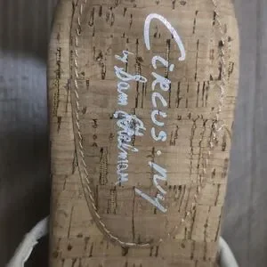 Chic white straps with a natural cork footbed. Stylish and comfortable for any outing.