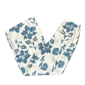 Elevate your wardrobe with these stunning Anthropologie wide-leg pants. Designed in a breezy, lightweight fabric, they feature a crisp ivory base adorned with a bold floral print for a statement look. The relaxed silhouette includes a high-rise waist with both elastic and zip/button closure for comfort, side pockets, and a flowy wide leg that moves effortlessly. Perfect for vacation, brunch, or lounging in style.