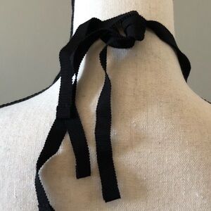 Bold gold necklace with unique texture. Black ribbon adds contrast.