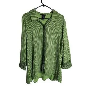Ali Miles mixed print button front blouse sz 1X art to wear Lagenlook Careerwear
