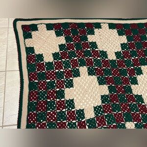 VTG Handmade Afghan Couch Throw Blanket Maroon Green Tan 60” x 65” Crochet