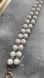 Two strands of white milk glass beads with clear crystal beads strung on metal chain.