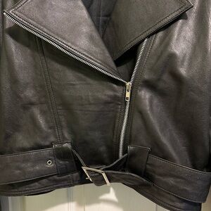 Elevate your style with this sleek black leather jacket. Perfect for any occasion, this jacket offers both comfort and a timeless look.