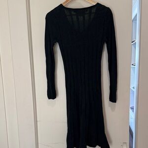 Chic V-neck sweater dress. Long sleeves for versatile style. 14" pit to pit, 20" sleeve, 38" long