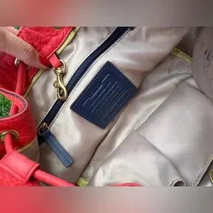 Coral pink coach drawstring bag