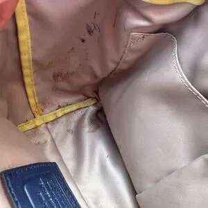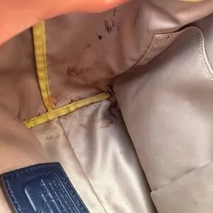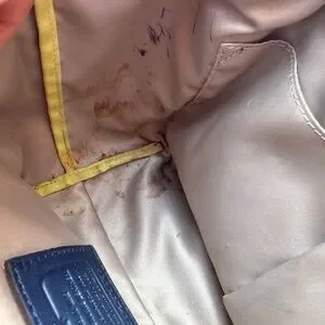 The inside of the bag needs cleaning . Has some stains that seem that can be cleaned. The strap has some peeling as seen in the pictures