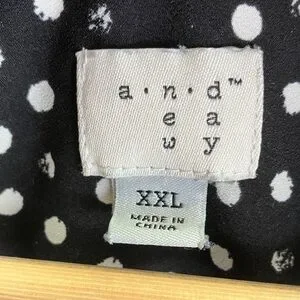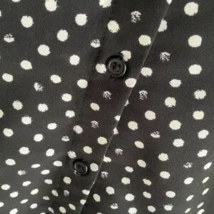 Chic and stylish sleeveless blouse featuring a classic polka dot pattern. Perfect for any occasion, this black and white top adds a touch of elegance to your wardrobe. Shoulder 15”, PTP 24”, full length 27”.