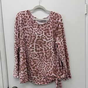 Belle by Kim Gravel Pink Leopard Tie Blouse