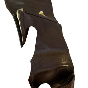 Elegant black wallet. Features gold horse and carriage detail. Sleek and stylish design.