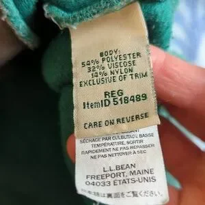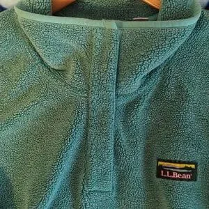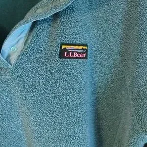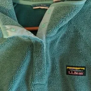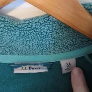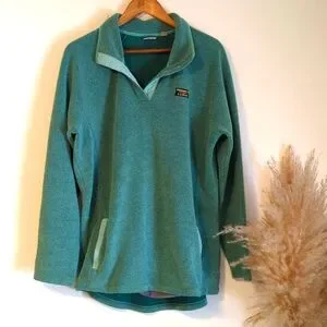 L.L. Bean comfy fleece sweatshirt in a pretty green shade. In excellent condition. Size x-large. Nice kangaroo pocket to place your hands or carry a phone, etc. Has snaps at the neck to adjust the neckline to your preference.