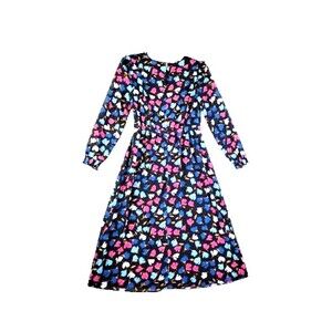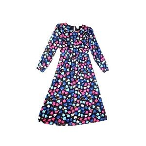 Dress is in excellent, gently used condition, showing minimal signs of previous ownership (thin "run" in fabric on right sleeve, barely noticeable due to print).