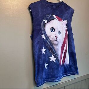 The Mountain Sleeveless Graphic Reverse Tie Dye Patriotic Cat Flag Shirt