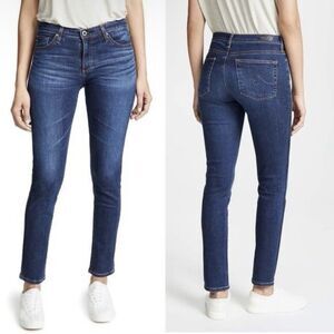 Capri style blue jeans by rag and bone. Low rise waist and a dark blue wash.