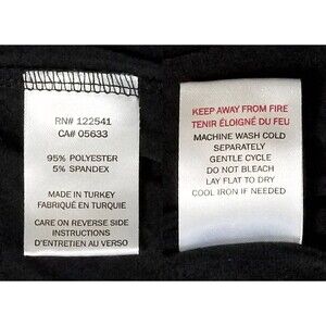 Each piece is black in color and adorned in an all-over leopard print. Made from 95% polyester and 5% spandex, fabric is semi-sheer, lightweight, and stretchy. The top offers a boat neck and 3/4 length sleeves.