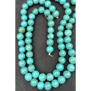 Elevate your jewelry creations with this exquisite strand of natural turquoise smooth round beads. Each bead, measuring 10mm, showcases a glossy finish and a captivating blue color, perfect for adding a touch of natural beauty to any design.