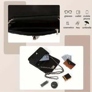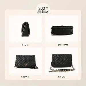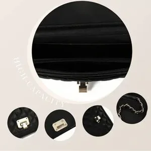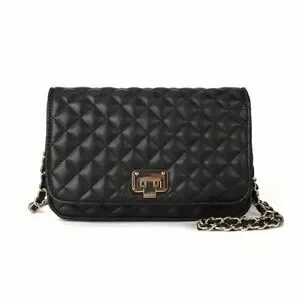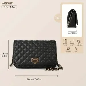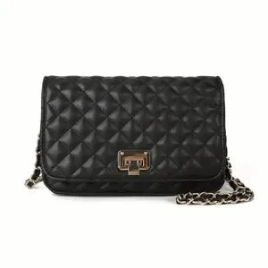 This stylish black quilted bag features a chic chain strap, perfect for any occasion. Its elegant design adds a touch of sophistication to your outfit.