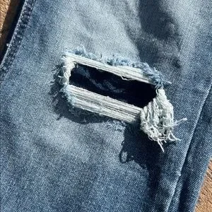 Trendy blue jeans with a distressed design. Perfect for casual wear. Tina of stretch!