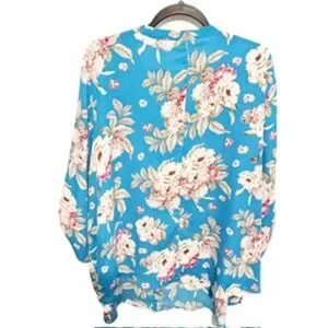 This is a Catherine's 3X turquoise floral print button down blouse with 3/4 roll up tab sleeve. This is a beautiful blouse for casual dress or even with jeans. It is generously sized at 27" pit to pit and 32" long shoulder to hem. Excellent condition. #catherinesblouse #3xbuttondownblouse #plusfloralblouse