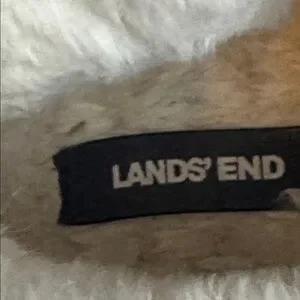 LIKE NEW BUT USED Cozy suede slippers with plush faux fur trim made by LANDS END…Perfect for warmth and comfort. Size 8