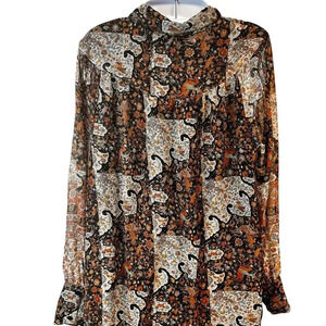 .OBJECT Objarya Fall Print Long Sleeve Button Up Short Shirt Dress. Boho Work Party