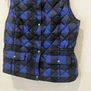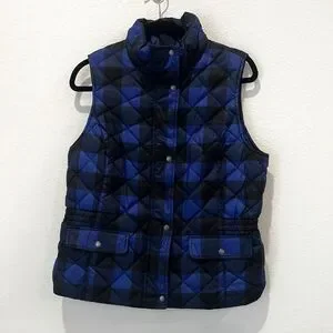 Talbots Ladies Down Blend Royal Blue /Black Size Medium Vest Preppy Fall Gingham