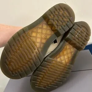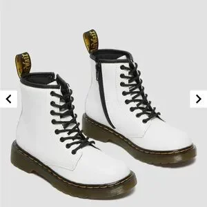 Classic white leather boots with black laces. Features signature yellow stitching. Durable and stylish.