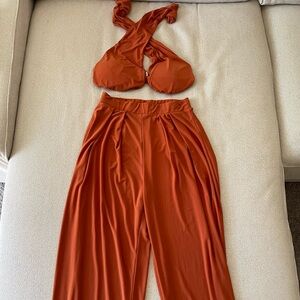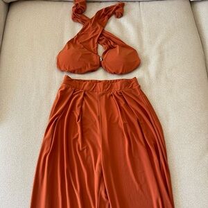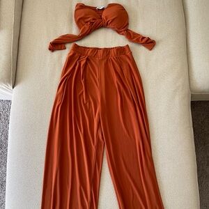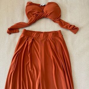 Create your own style with this set! Rust orange set with a versatile top. It was bought from a boutique and worn once. Material is ridiculously soft, comfy and so flattering.