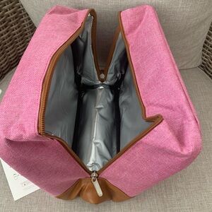 🍀 Lucky Brand Lunch Bag: Pink w/Brown Handles, Insulated Cooler, 10x8.5x6”