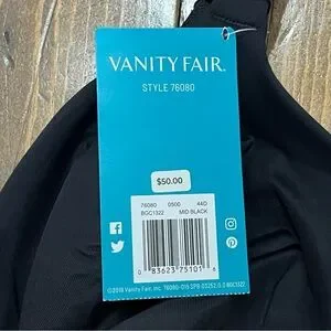 Vanity Fair Black Women's Bra 44D Full Figure Back Smoothing New With Tags