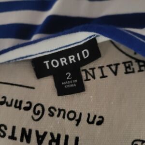 Chic and flattering Torrid skater dress in a bold royal blue with subtle stripes. Features a classic A-line silhouette, short sleeves, and everyone’s favorite detail—pockets! Comfortable yet stylish, this dress is perfect for work, brunch, or a night out.