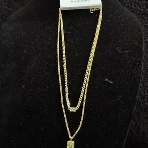 This elegant gold layered necklace adds a touch of sophistication to any outfit. Perfect for any occasion.